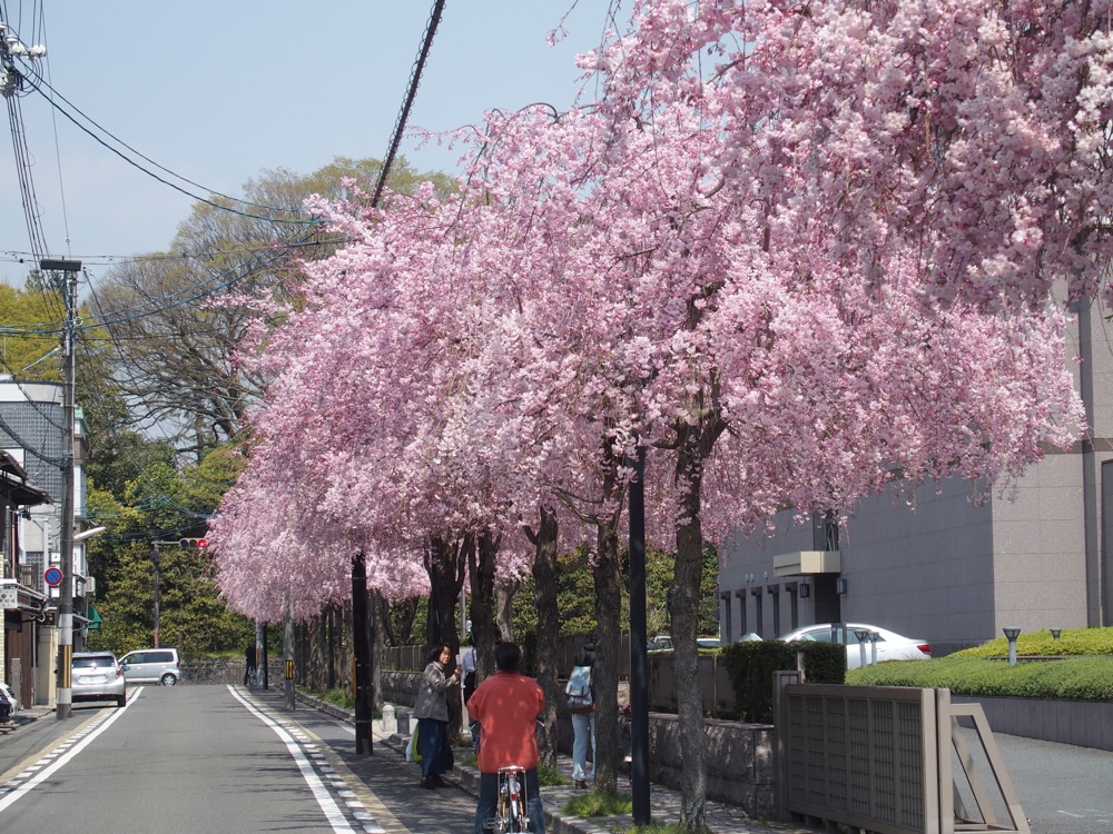 イノダコーヒーを出て早速、見頃と言われる桜を見に足を運ばせましょう。せっかく京都に来ているので、神社仏閣系の場所に行きたいと思いますが、既に街中を歩いているだけでも、満開の桜が目に飛び来んできました。流石は京都!…という事ではないのかもしれませんが(笑)、そう思ってしまうのですから不思議です。どこを切り取っても京都らしいと思えるから…なのでしょうか。