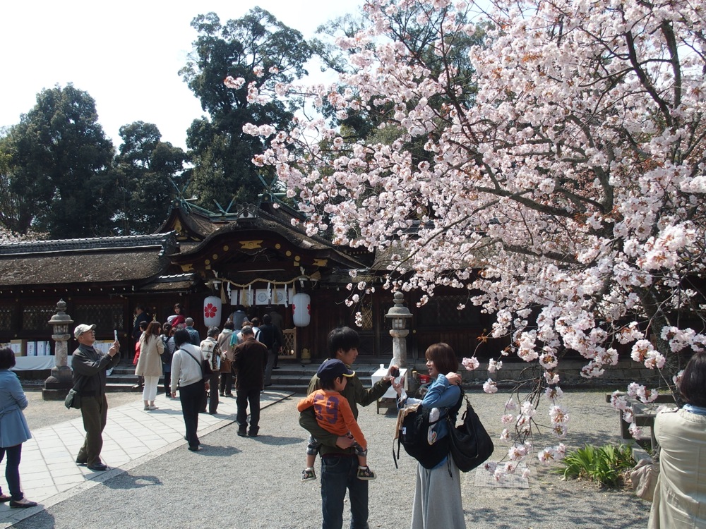 そして、次に向かったのは平野神社(左下写真参照)です。京都の桜の名所としても広く知られていますが(神紋も桜です)、成程、その桜の品種の多さが、沢山の人を惹き付けて止まない部分なのかもしれません。