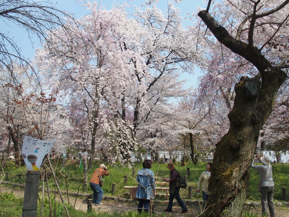 全体的には、桜のピークは若干過ぎて、少し散ってきた様子が見られた感じでしょうか。それでも、前述のように開花時期の異なる桜が多数存在する事から、どこかしら見頃の桜が見られるというのは、他にはない珍しい環境なのかもしれません。流石に人出は多く、皆、珍しい桜に目を奪われている感じでした。