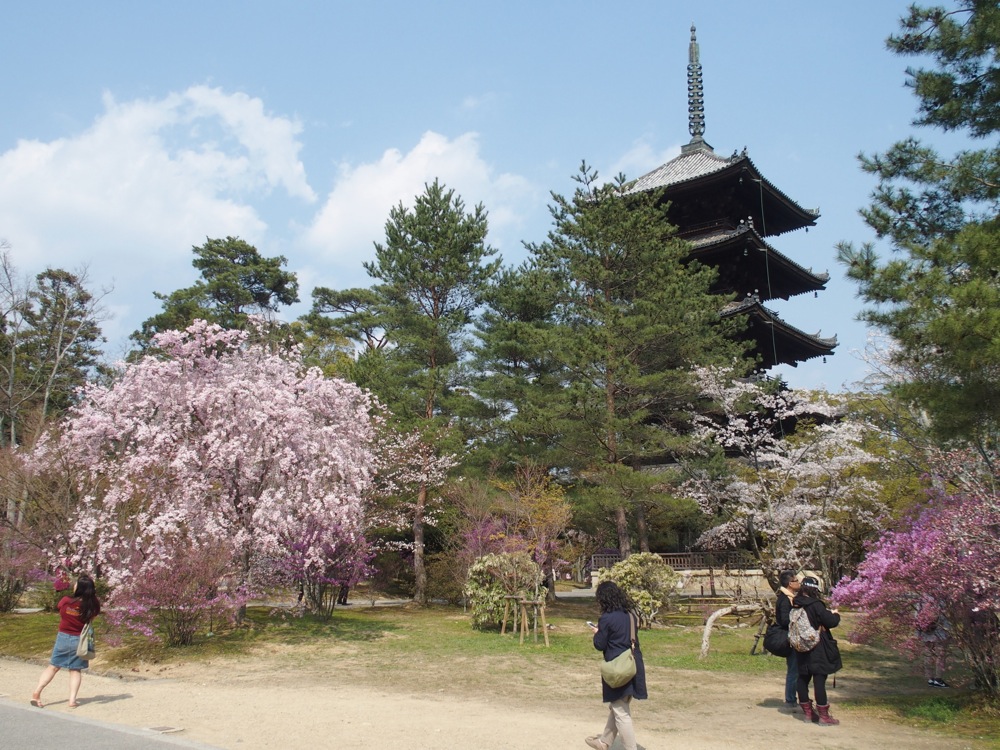 こうして平野神社もだいぶ堪能しましたが、あと1ヶ所くらい立ち寄る時間はありそうです。そんな3ヶ所に向かったのは、世界遺産としても名高い仁和寺(左下写真参照)でした。真言宗御室派の総本山でもある場所ですね。