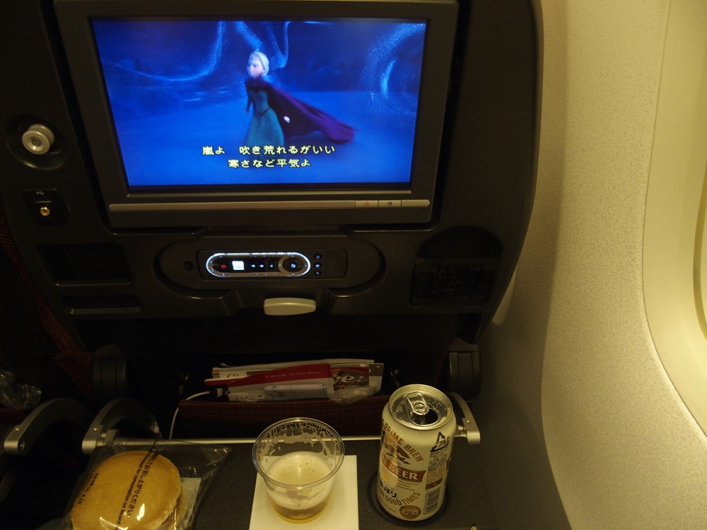 ただ、自分の予定としては、すみだジャズで燃え尽きた(笑)後の深夜便で、次の日はどうしても朝から行動せざるを得ない状態だったので、なるべく機内では眠っていようという考えがありました。しかし、こんなに充実した機内プログラムを見せられては、なかなか眠るのが惜しまれてしまうではありませんか…。折しも、数ある映画の中には『アナと雪の女王』まで組み込まれていまして、これは見ないわけにいかないでしょう(笑)。結局、機内では殆ど眠る時間などありませんでした…。