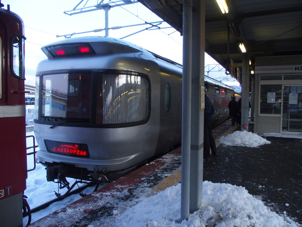 『はまなす』と違って歴史は新しく、1999年に豪華寝台列車として登場し、1編成のみが造られた為に1週間に上野駅〜札幌駅を3往復するスケジュールが与えられ、瞬く間に人気列車に躍り出た列車です。まだまだ走れる筈ですが、やはり新幹線開通と同時に廃止になる運命にありまして(この車両を使って、別列車の設定が検討されています)、これもまた貴重な写真となる事でしょう。
