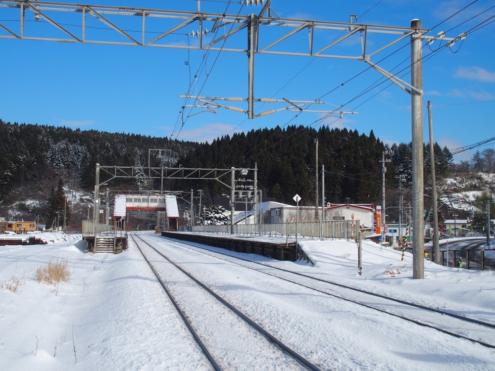 これらの駅間は1kmとなっていますが、歩いていくと多少大回りになるのと、今の時期は積雪で通れない道もあったりしたので、道のり的にはなかなかの距離になっていた事でしょう。周囲は開けていて、正に一面銀世界という感じでしたが、その向こうには相変わらず綺麗な岩木山も望めたりと、正に天候に恵まれた1日だと改めて思いましたね。