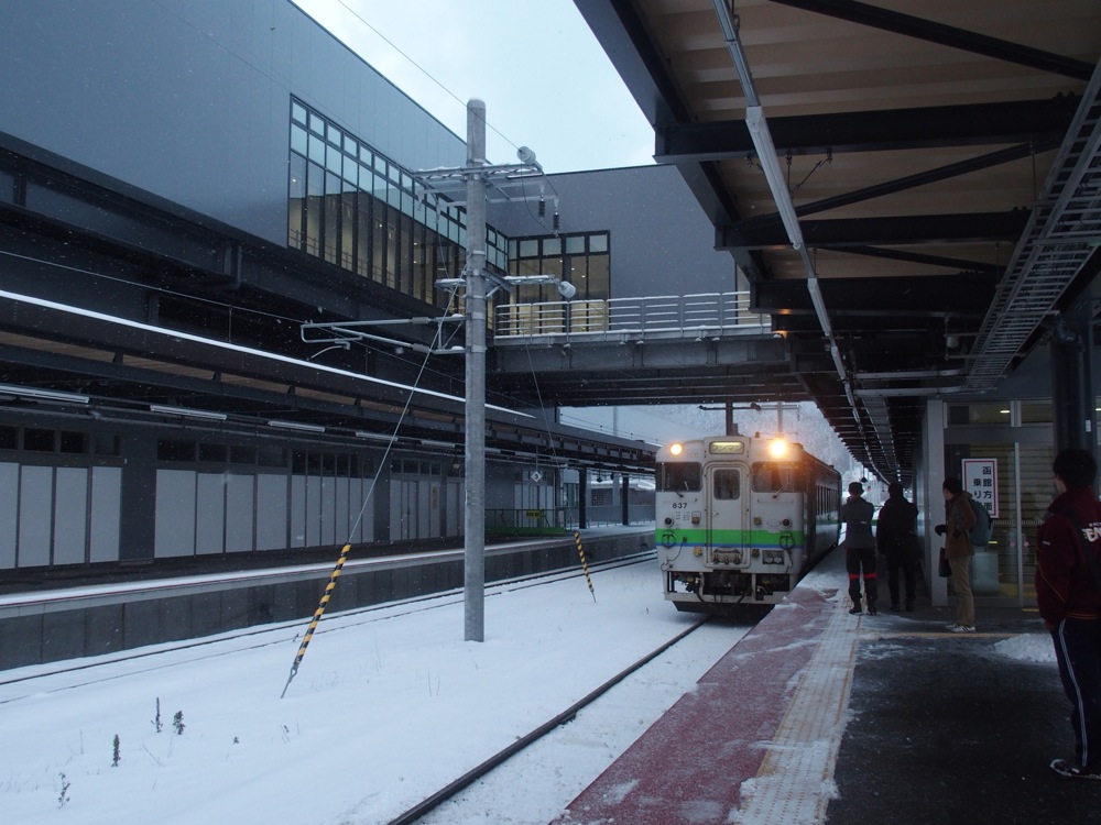 前述通り、昔は更に江差方面に線路が伸びていましたが、2014年5月12日にその区間は廃止になってしまいました。現在はこの先は、津軽海峡線として青函トンネル方面に線路を伸ばすだけですが、それも新幹線に取って替わられます(…貨物列車は継続するので、線路も一応は繋がったままになる筈です)。…色々な思いが交錯してしまいますが、早速江差線の鈍行列車での“さんぽ”に入りましょう。この路線、日中は青森駅〜函館駅を結ぶ特急『スーパー白鳥』号、特急『白鳥』号等も行き交ってますが、江差線内での途中駅は起終点を除いて停車しないので、今回利用する列車は鈍行列車のみという事になりそうです。