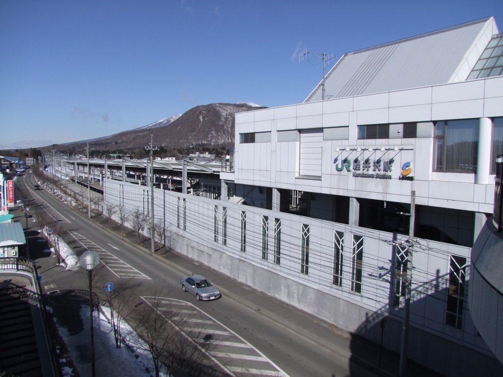 それが上の写真です。少しゴチャゴチャしているものの、短い編成を撮るには適した場所です(中軽井沢駅からは、徒歩5分くらいでしょうか)。浅間山は気持ち良いくらい全容が見渡せましたね。中軽井沢駅は現在改築中で、旧駅舎は既にありませんが、新しい交流の場として(図書館が出来るとか)今後発展が見込まれそうな雰囲気でした。信越本線時代は特急も停車した駅でしたが、新幹線は軽井沢駅の方に造られたので、こちらも発展させていこうという狙いでしょうか。