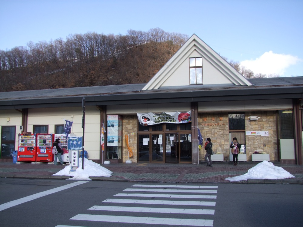 駅前には道路が通っていますが、何も事情を知らない人から見たら、まさかこの建物の地下に鉄道路線のホームがあるとは思わないでしょうね…。無人駅ですが駅舎は立派で、建物内には誰でも使え、エアコン完備の畳敷きの無料の待合所(右上写真参照)まで設置されています(今年の9月にボヤ騒ぎがあったのとの事で、現在は終日閉鎖されているとの事…残念です)。