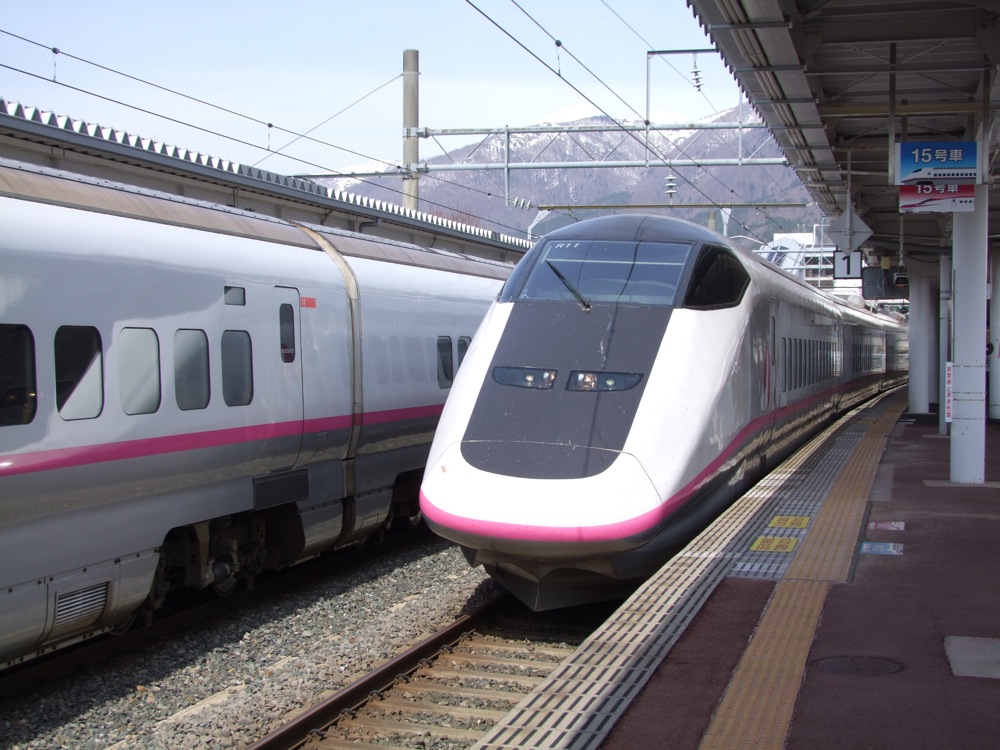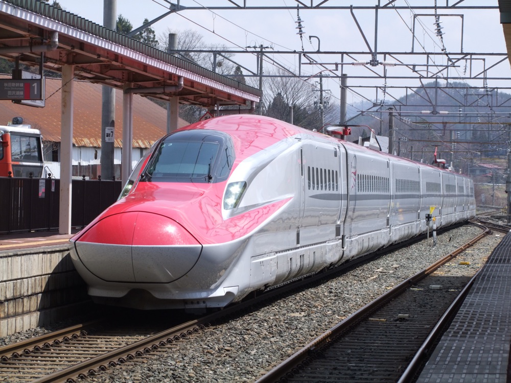 そして、早速やってきた『スーパーこまち』号のE6系。自分はこの時に初めて生で見る事になりましたが、文句無しに格好良い車両です。流石、フェラーリをデザインした人が監修しただけの事はあります。現在、この車両を使用している『スーパーこまち』号は4往復走っており、順次E3系を置き換えていきます(早速、4月27日から一部が置き換えられます)。