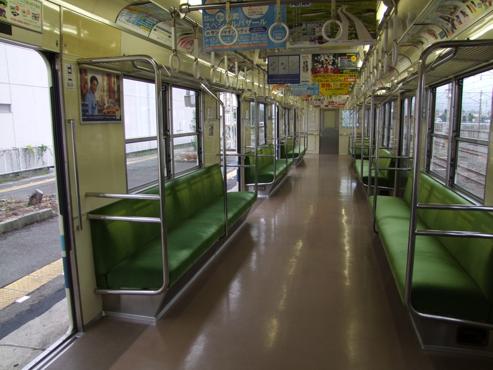 左下写真の115系はJRからの乗り入れ列車で、1日に何本が設定されていて、塗装からもそれは判別付きますが、こちらの車両は構造上、ワンマン運転は行えないというのも、また細かい判別ポイントだったりします(笑)。また、トイレの設定が有るのも、JR所属の車両のみとなっています。