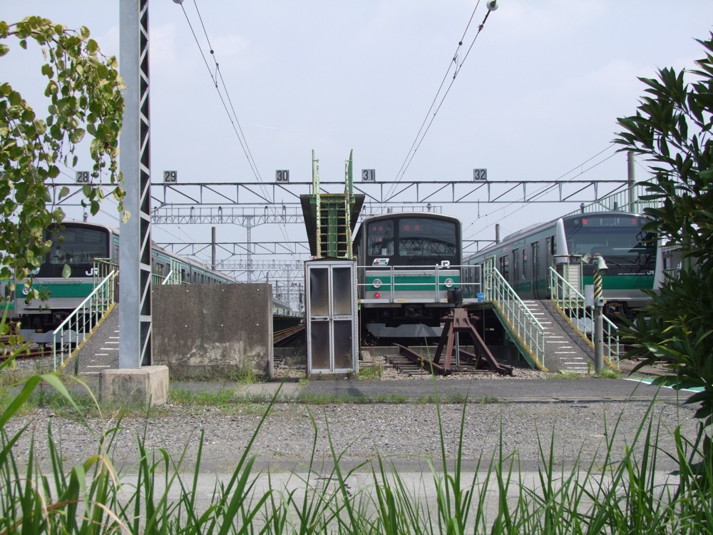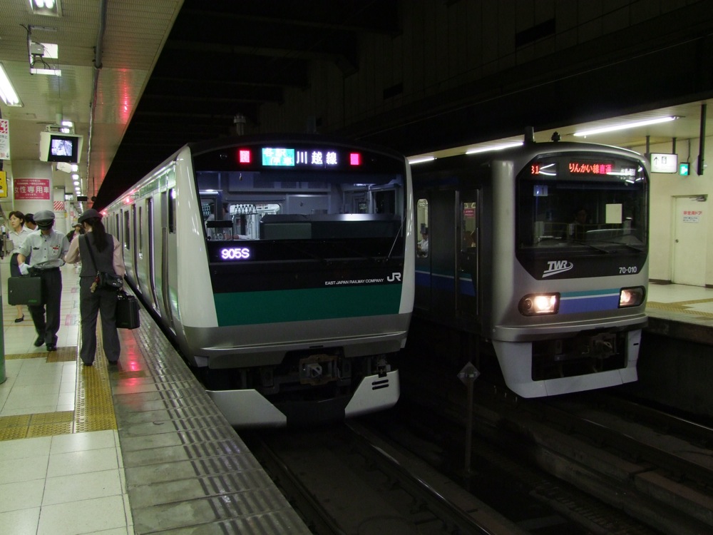 混雑率としては、大宮方より船橋方の列車の方が僅かながら混んでいる状態ですが、大宮駅では出口が先端の1ヶ所しかないので先頭車両に乗客が集中し、全区間で最も混む状況になってしまっているようです。この為、女性専用車両は柏方の先頭車に設定されています。朝ラッシュ時(大宮駅は、少し東京から離れているターミナル駅なので、ピークは7:30前後)は4〜5分毎、日中は10分毎に運行されています。