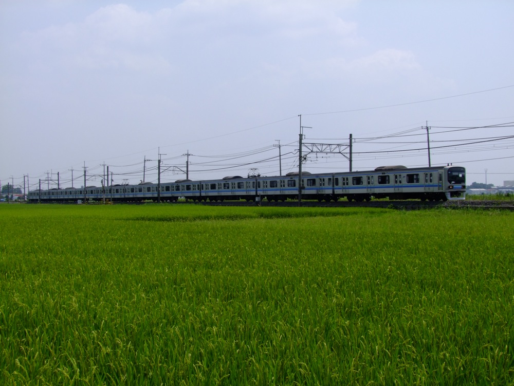 この列車は、現在設定されている唯一の「野田線からの伊勢崎線直通列車」ですが、まだ宣伝が浸透していないのか、この日は野田線から利用している乗客は僅か…という状況でした。かなりの改造が施された車両で、窓も天井まで行き届き、座席の一部が窓側を向いている等、面白い趣向が凝らされているとは思うのですが、大宮駅から野田線を経由して(しかも、大宮駅の次の乗降扱いは春日部駅)スカイツリーに向かう…というのが、まだ浸透されていないのでしょう。週1回のみの運転というのも若干難しいと思うのですが、何とか頑張って貰いたいものですね。七里駅〜岩槻駅間等も辺りが開けていて(左下写真参照)、車窓的にも楽しいと思うのですが、やはり少し地味な印象なのでしょうか…。