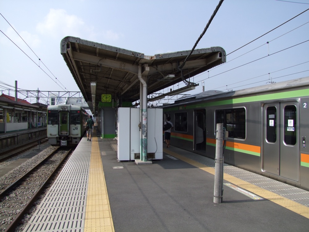 そうこうしている内に平原駅を過ぎ、左からJR小海線〔鉄道さんぽ 5.(JR東日本、小海線編)参照〕が合流して、この列車の終点、小諸駅に到着します。そもそも軽井沢駅~小諸駅間の区間列車が多いのは、ここまでの利用者と、ここから先の利用者にだいぶ幅があるという部分もあるのでしょう。ここからは列車の本数も増え、1時間に1本程度から、1時間に2本程度となります。