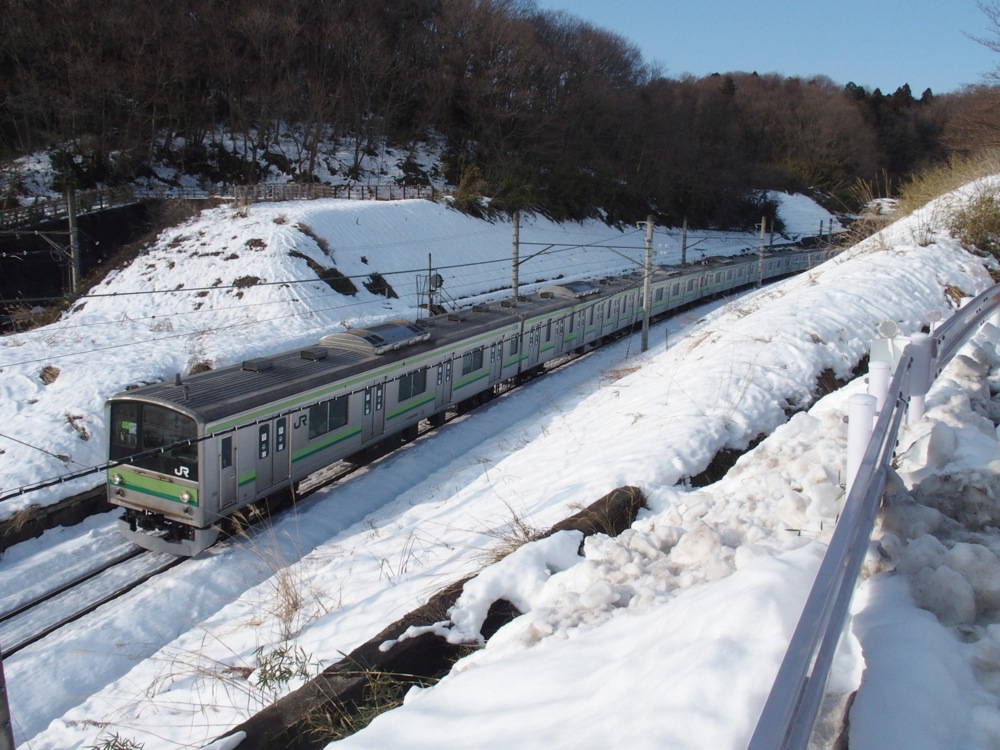 それにしても寒いです。都心から1時間ぐらいで着いてしまう為に、その変化も急激なものと感じるのでしょうか。まだ朝方の時間帯でもあったので、空気もピシッと締まっており、恐らく氷点下10℃ぐらいはいっていたと思われます。写真撮影の際、手袋をするわけにはいかないので生指でやるしかないのですが、30秒くらい経つと痛くて堪らなくなります。1分も経つと、暫く感覚が無くなってしまう程です。これは、大変な時期に“鉄道さんぽ”を敢行してしまったなと思い始めてしまいましたが、天候は写真通り、本当に恵まれました。後に掲載する浅間山もよく見え、やはりこの時期に行っておいて良かったです。