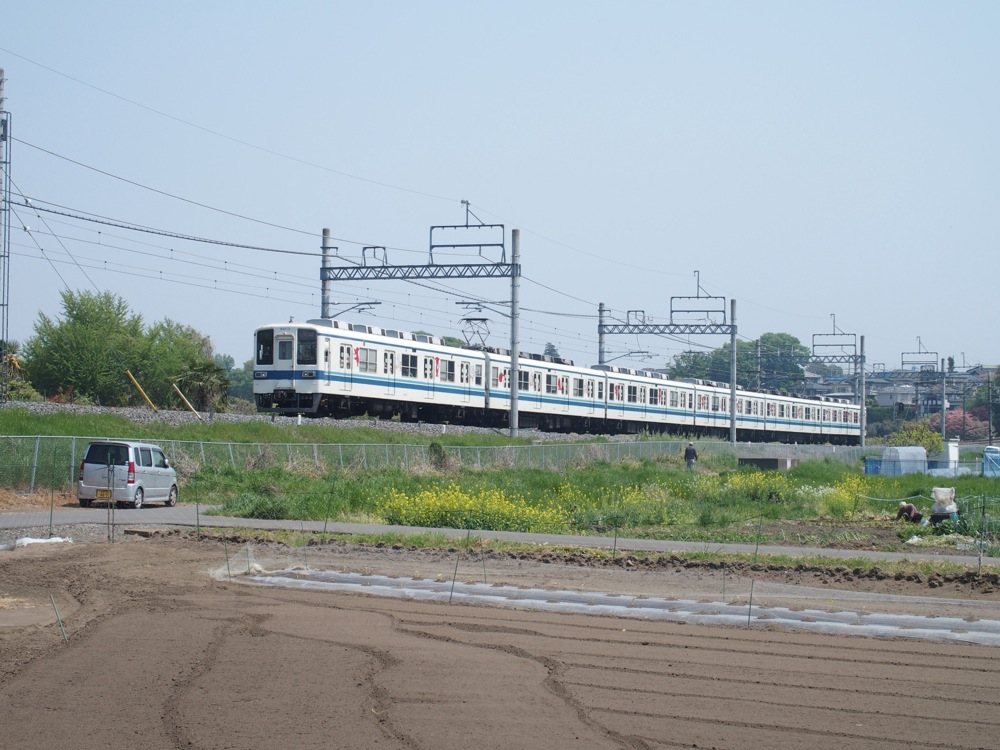川越駅を出ると、暫くは川越線と並走しますが、あちらは4両編成で20分毎に1本の運転なので、車内からはなかなか姿を捉える事が出来ません。そして、両線が分かれる辺りに、1本の線路を越えるのですが、これが西武新宿線で、車窓の右側には当路線の本川越駅が臨めると思います。要は、川越市中心部には、川越駅、川越市駅、本川越駅と3つの駅があるものの、それらは全て別の場所にあり、そして本川越駅はどの路線とも接続していないのです(割りと近いのは本川越駅と川越市駅で、徒歩8分程です)。西武線だけ独立した形になっていますが、喜多院や菓子屋横町等、川越の観光ポイントに一番近いのは本川越駅であり、それぞれにメリットもあれば、デメリットがある状況になっているのかもしれません。川越市駅以降は、日中は快速と急行だけの運転になり、本数は半分以下に減ってしまいます。