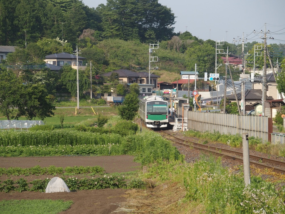 では、この烏山駅から1駅“さんぽ”して戻ってみる事にしましょう。充電は5分で終われど、次にその列車が折り返して発車するのは約1時間半後で(笑)、この列車を、1駅手前付近にある烏山線の有名撮影ポイントで写真に収める…というのが次の目的となります。