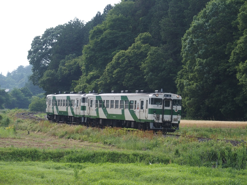 話しには聞いていましたが、本当に駅の周囲には民家が1つもありません。何故、こんな所に駅があるのか…という考えに至ってしまいますが、駅付近には野外活動施設の、大池いこいの森があり、こちらへの利用者を見込んだのでしょうか。しかし、風景は素晴らしく、列車を撮影する際に、どこを切り取っても絵になります。路線的には、カーブしながら平野部に降りていく…という感じの区間なので、周囲の風景と相まって、自然的にも迫力的にも申し分無い状況が作り出されているのです。しかも、これらの風景は駅を降りた瞬間から始まっているので(右上写真は駅のホームから撮影したものです)、変な話し、撮影の為に設置された駅なのでは…と思ってしまうくらいです(笑)。