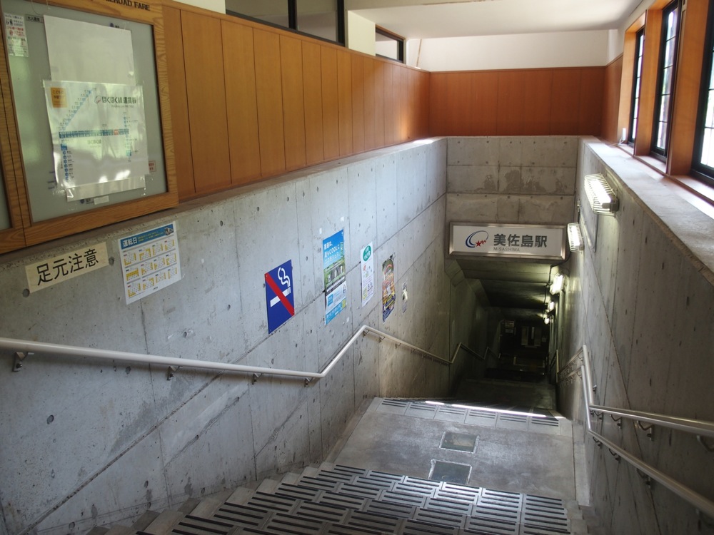 せっかくなので、赤倉トンネル内にある美佐島駅に降りてみます。この日は真夏の太陽が照り付け、相当暑い日だったのですが、トンネル内のホームに降りると空気は冷んやりとしていて驚かされました。普通列車しか停まらないのでホームも2両分しか無く、何だか不思議な雰囲気の駅です。そしてホームの外に出るには、分厚いドアを2ヶ所(ホーム側の1ヶ所は、その時の運転士がリモコン操作で開錠しているとの事)通らなければいけない仕組みになっていました。