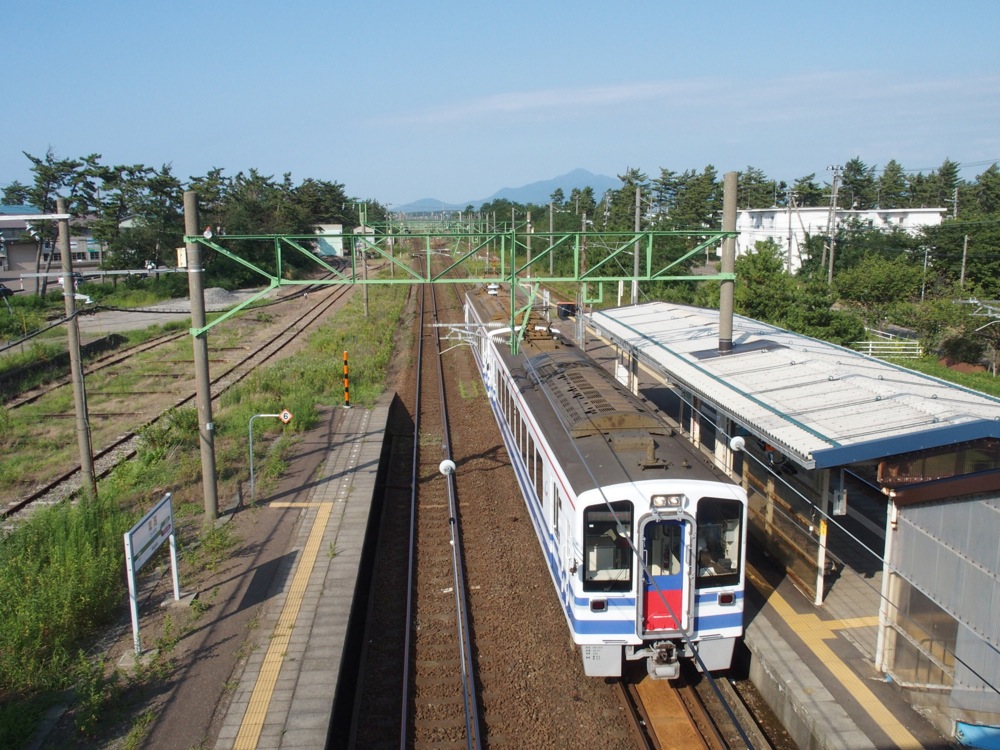 田沢湖線としては終点の大曲駅ですが、スイッチバックをして向かう大曲駅~秋田駅間が少し特徴的なので、こちらにも触れておきましょう…。田沢湖線が改軌したように、この奥羽本線の大曲駅~秋田駅間も改軌されたのですが、複線の区間は片側の線路しか改軌されませんでした。つまり複線のように見えて、単線が2つ並んでいる…という状態になっているのです(…なので同じ方向を走行中に、普通列車が秋田新幹線に追い抜かれる場合もあります)。