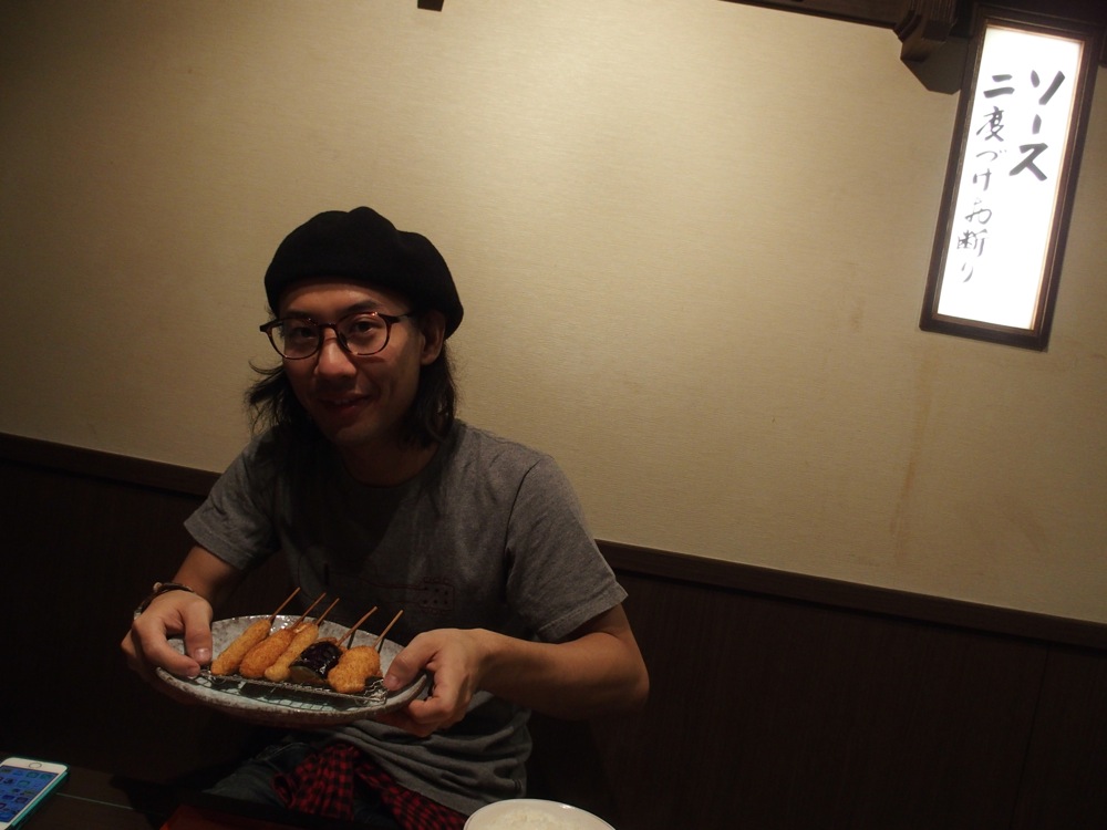 さて、帰路はこの方と一緒でした(笑)。せっかく大阪に来たのだから…と、新大阪駅構内にあった串カツのお店でランチをし、お互い新幹線へ…。今回、手塚さん、いや、森田君にも随分と助けて頂きました。またどこかで共演の機会を楽しみにしていましょう。