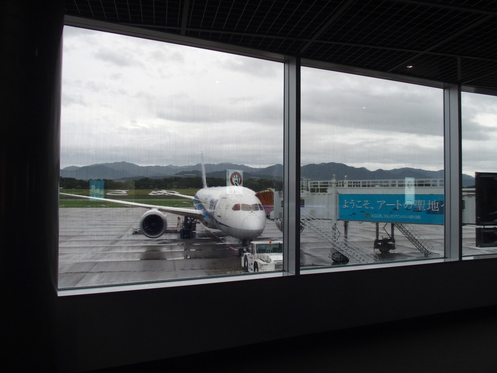6:00集合というのは、かなり余裕をもった集合時刻でもあり、寝坊しても空港には余裕で着けたのは良かったです。高松名物、ぶっかけうどんを食べる時間もありました。帰りの飛行機を見ると、最新鋭のボーイング787♪…機内でしっかりと休みをとり、この日の午後以降の予定に備えたいものでした。