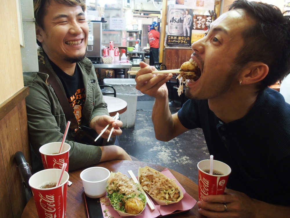 そして、やはり腹ごしらえも大事なポイントです(笑)。大阪で腹ごしらえと言えば、やはり藤田君の好きな粉ものを無視するわけにはいきません。お馴染みのたこ焼き「わなか」にて堪能してきました。こちらも大阪ツアーの際のお馴染みの光景として、今後よく見られるものだと確信した次第です(笑)。