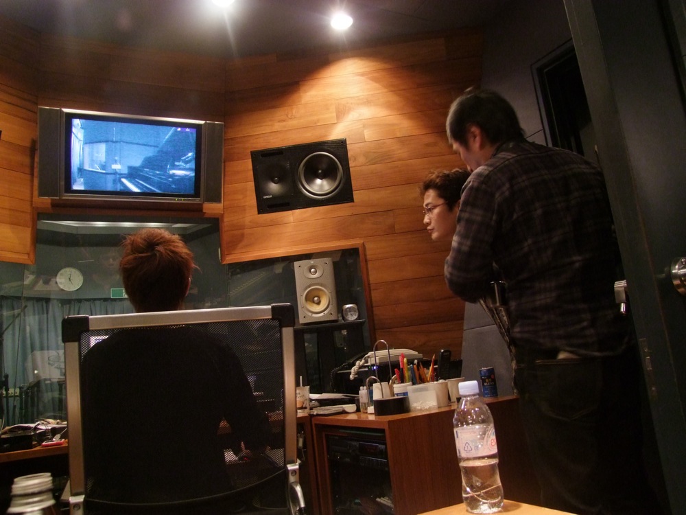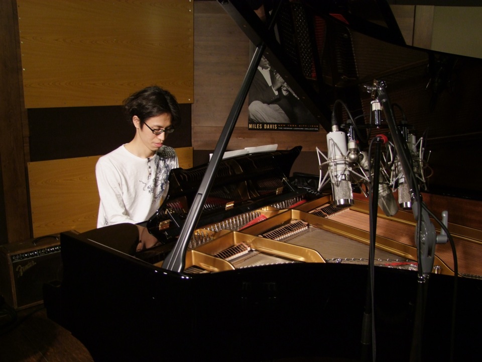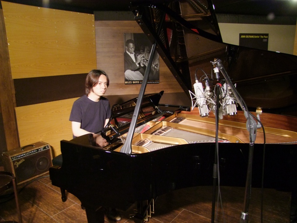 そもそも、この直前のライブが日を跨いでいるわけですから、スタジオに自分が24:00に着くわけがなく、移動の電車も遅れていて、自分が着けたのは深夜1:00を回った辺りでした。まあ、基本は最初の1時間は、マイクやサウンド・チェックに使うので、そんなに問題があったわけではありませんが、自分はスタジオに着いてすぐにピアノに座り、颯爽と録音に移った…という感じでした(笑)。しかし、かえってそれが集中力を引き出させていたような気もしてます。