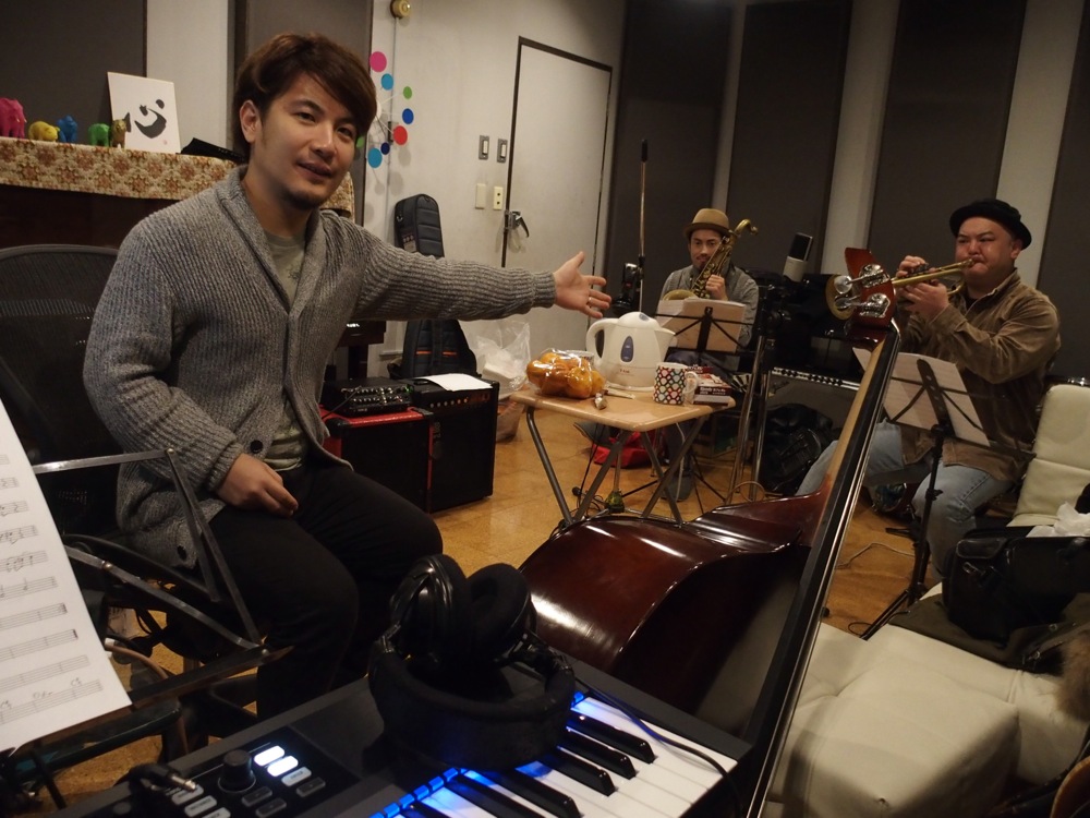 そして今回、自分の新曲もやる事にしましたので、トリオメンバーも揃って譜面とにらめっこ(右上写真参照)。まるで譜面と会話をしてるかのようです(笑)。そして、今回初披露という副田君の新曲も取り上げる等、今度のライブは本当に挑戦的な選曲になりそうです。副田君は、ゲスト・プレイヤーという扱いではありますが、殆どステージ上には上がって頂く事になりますので(笑)、サックスとのアンサンブルを是非ともお楽しみ下さい。