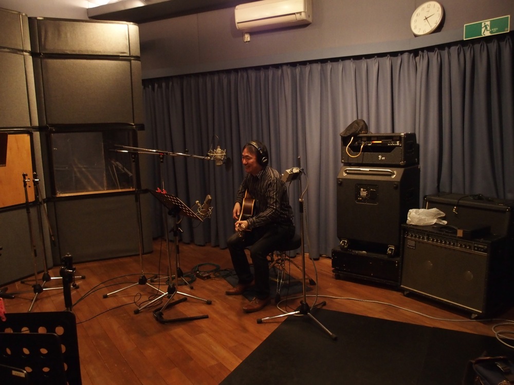 さて、インストバージョンの方にすぐ移ります。事前に丸本さんから、曲調の概要は聞いていたのですが、更に自分は細かいアレンジを事前に考えてきており、丸本さんにその場で確認して貰いつつ、直ぐさま録音へ…。丸本さんも気に入って頂けたようで、こちらも2回程のテイクで終える事が出来ました♪…この時点で時刻はまだ2:20。相当順調だったと言えるでしょう。深夜のレコーディングで恐いのは集中力が切れる事なので(笑)、そんな事?になる前に音が残せて良かったと思います。