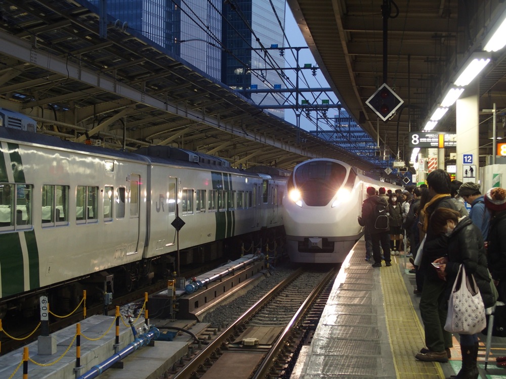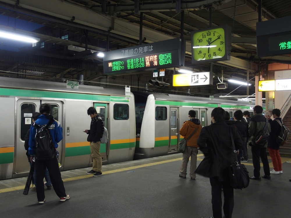そして上野駅に入ります。東京駅のJR東海道本線の雰囲気は、もう完全に中間駅になってしまっているような感じでしたが、上野駅はまだまだ終着駅感が残っているような気がしました。…というのも、まだ多くの上野駅始発列車が残っている事と、北行きの3路線同士が漂わせる広い駅構内によるものなかもしれません。それまでのJR東海道本線からの列車が、ここで3方向(大宮駅までは2方向が同じですが)に分かれるのですから、乗客案内をしっかりしないと間違えてしまいそうです。そして直通運転区間が長きに亘っている為、もしも寝過ごしたら、とんでもない事にもなりかねませんね…。JR宇都宮線で上野駅で降りようとしていたら、寝過ごして熱海駅まで来てしまった…とか、今後本当にありそうです。注意して頂きたいですね。