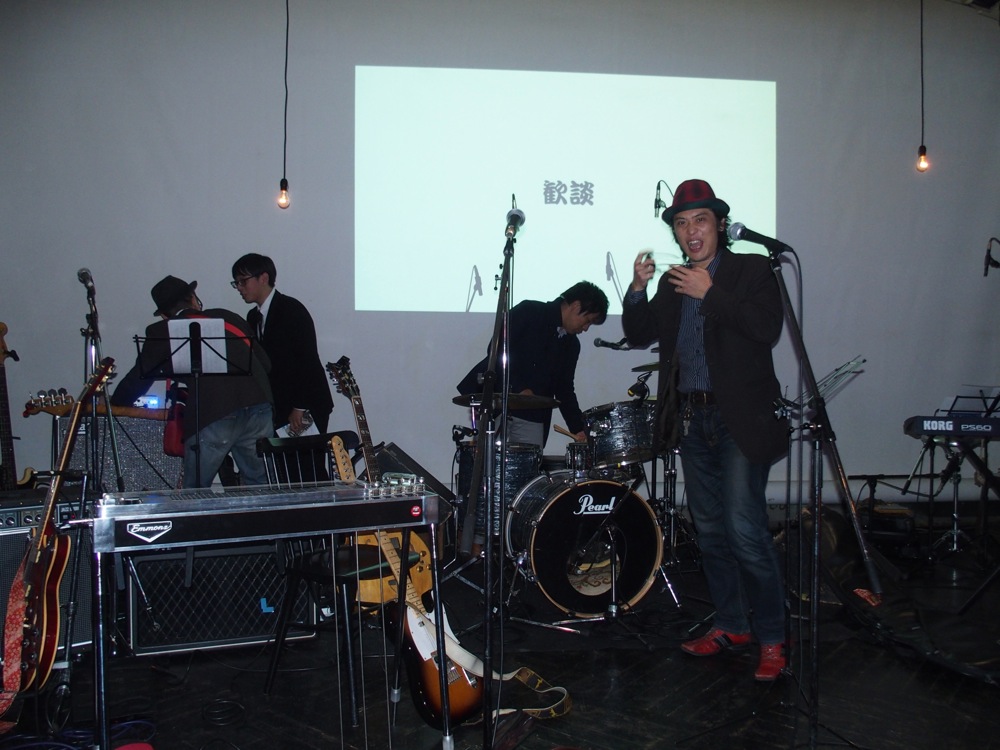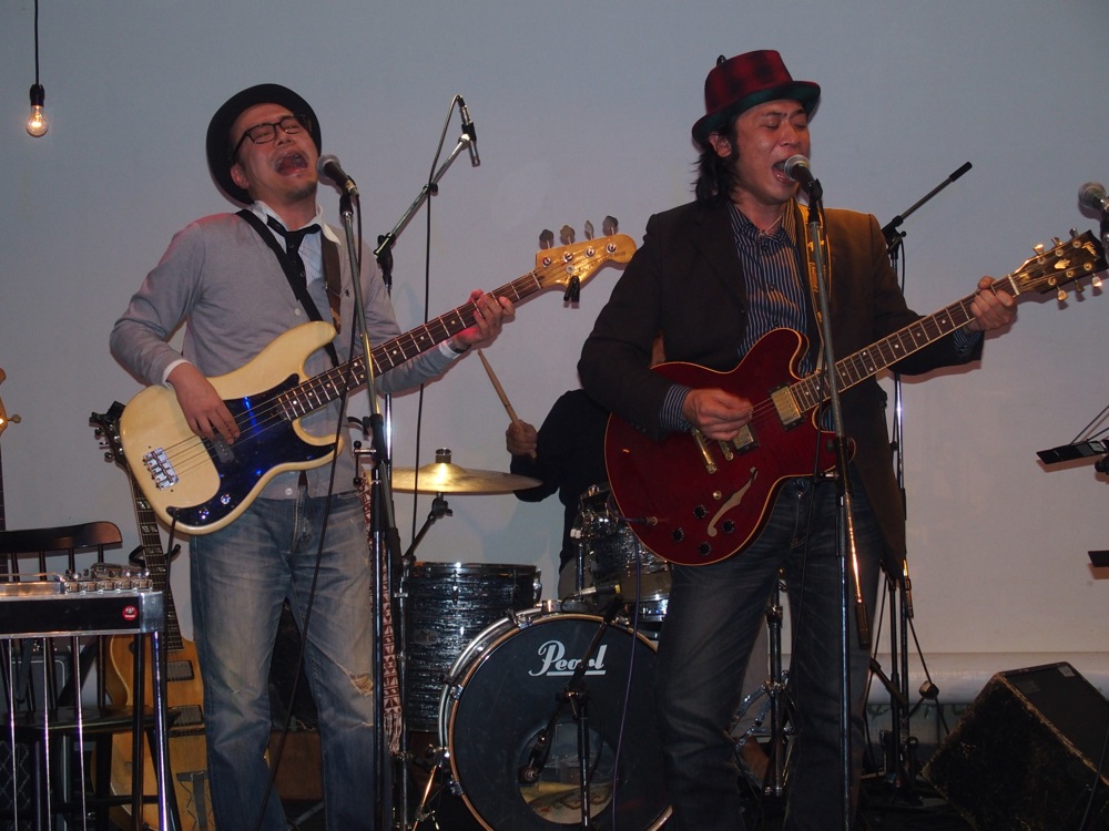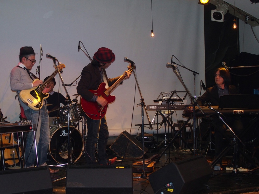 その後輩はベーシストで、2009年の9月に Dixie Pork としてライブをやる機会もありましたが〔竹内大輔の写真日記(〜2009)、第2回平和を願うコンサート in 埼玉参照〕、そこから数えても5年半振りです…。メンバーの1人は浜松から駆け付け(もう1人のメンバーは既に東京在住)、久し振りにメンバー4人が揃いました。演奏曲は、自分達を代表する曲だったと思われる“田園少年”。その後輩からのリクエストでもありました。