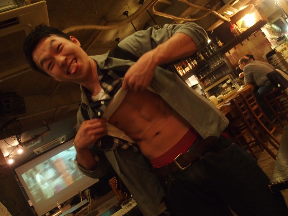 …最後は、ライブ後にテキーラをショットで2杯飲んで、「僕、最近身体鍛えてお腹が割れるようになったんですよ。見て下さい!」と言って、突如脱ぎ始めたミキヤの写真で締めさせて頂きます。息子のミキヤにとってもご機嫌な時間であったに違いありません。