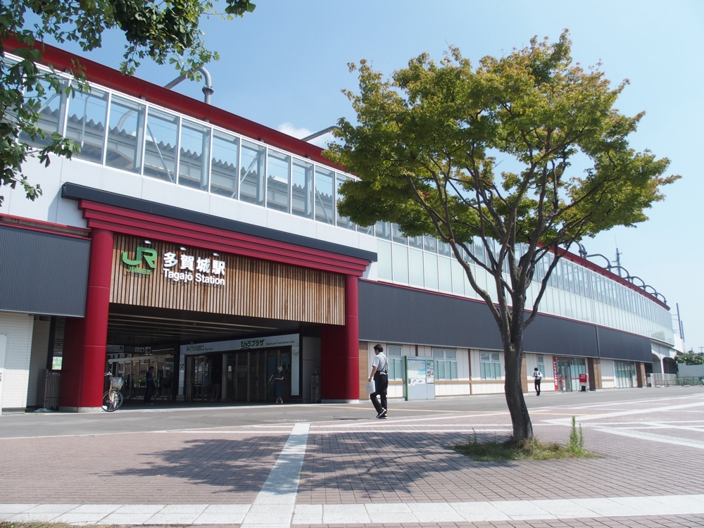 再度、昔から市街地が形成されていたエリアに入ると、多賀城駅となります。2009年頃から高架化が始まり、2013年に駅舎や周辺も含めて全高架化が完成しました。この完成予定も本来は2011年となっていましたが、地震の影響でずれ込んだそうです。写真を見ても分かるように、駅の入口は付近の多賀城の門をモチーフとしており、駅全体のデザインも、この地の歴史を感じられるようにとの配慮がなされているそうです。