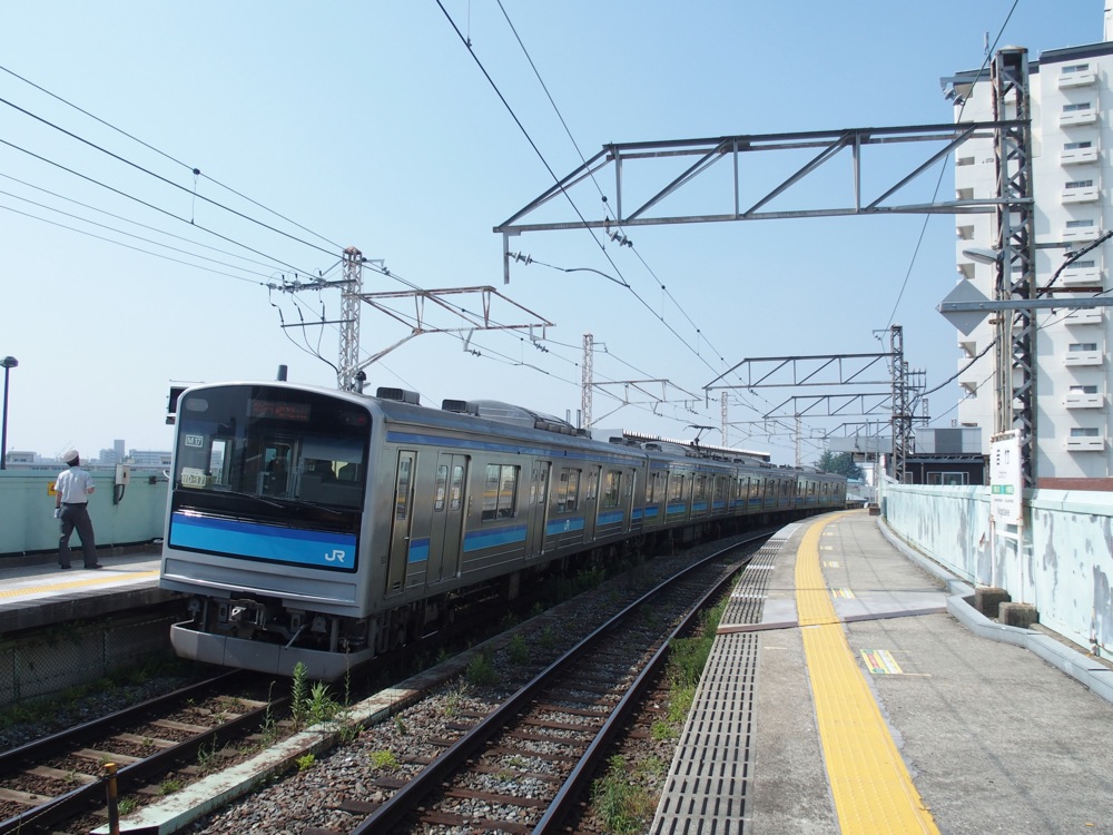 仙石線を走る車両は、後に紹介する仙石東北ラインのHBーE210系気動車を除き、首都圏でも見られる205系のみが走っています。全て4両編成で、基本のラインカラーはブルー2色となっていますが、何編成かはグリーンやレッド、パープル等が1両1両で変わっていくというカラフルなものとなっており、この編成の1両は 2way シート設置編成と呼ばれ、座席を回転させて、ロングシートにもクロスシートにも出来る仕様となっています。それらも含め、仙石線に投入されている205系はトイレが設置されたり、半自動ドア機構を備えている等の改造が施されている為、全てに3100番台の区分が与えられます。