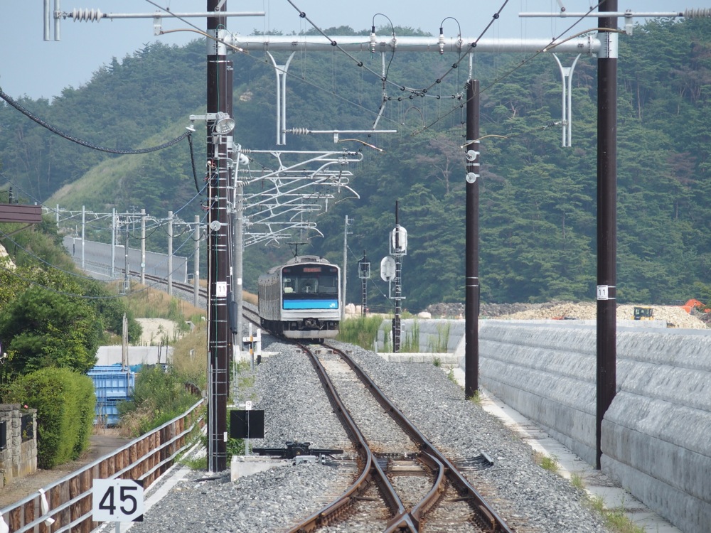 さて、以前は国鉄の代表車両であった103系という車両ばかりだった仙石線も、現在はJR山手線等から転配してきた205系ばかりとなり、最近は首都圏で205系を見る機会が少なくなってきたので、遠く離れた仙台でこれらの車両を見る事が出来るのは親近感を覚える路線でもありました。しかし、2011年3月に起きた東北地方太平洋沖地震およびその津波の被害で全線が不通になってしまったのは記憶に新しい事でしょう。それは時が経ち、それぞれの区間で運転が再開されるも、高城町駅〜陸前小野駅間は最も津波被害の大きかったところで、2015年に入っても運転再開はされていませんでした。