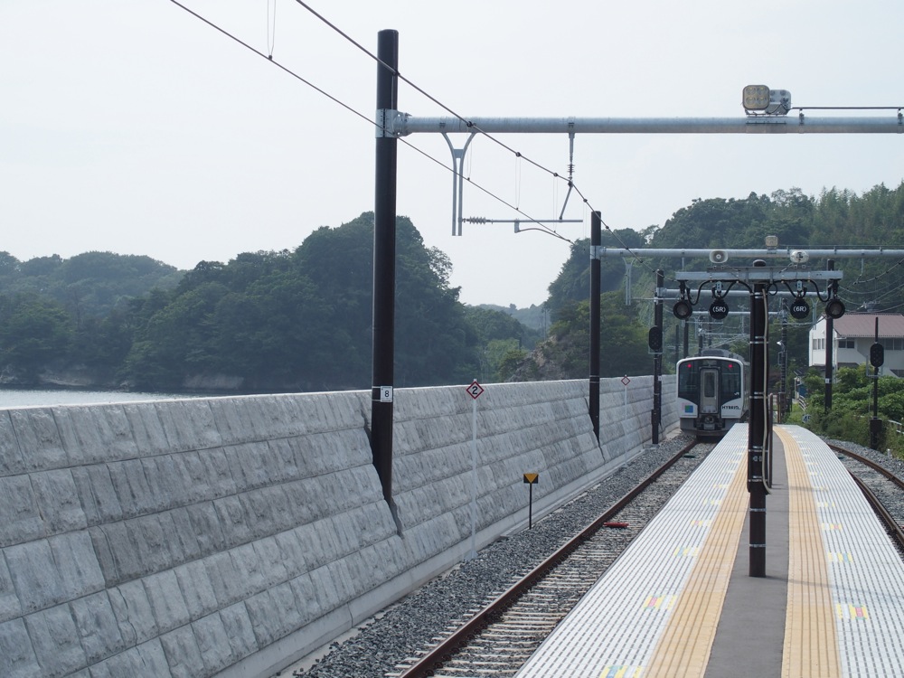 この区間で最初に気になったのは陸前大塚駅でした。この駅は海のすぐ脇にある…と言っても過言ではない駅で、ホームからもすぐ海を見渡す事が出来ました。大地震で津波発生と聞いた時には、この駅はどうなってしまうのだろう…とすぐに思ったのでした…。普通列車しか停車しない駅ではありますが、大変味のある駅であり、復旧して現在の姿がどうなったかも知りたかったのです。