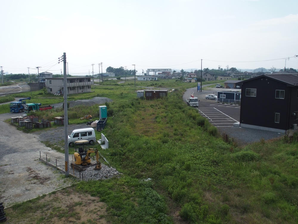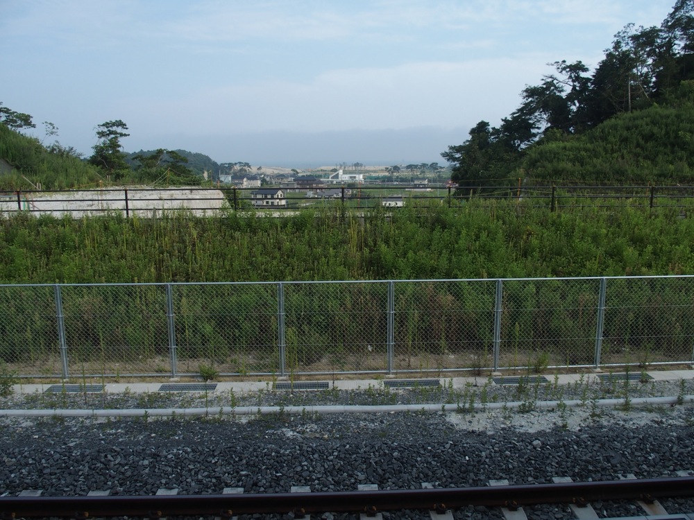 道路の周りや、道路から内陸側は住宅がまだあるのですが、その先の海側には建物が僅かしか建っていません…。いきなり広い平地に来たようで、どうも違和感が残る景色です。車はそれなりに通っていますが、歩いている人は少なく、やはり住んでいる人が減ってしまったからなのでしょう。当然、レストラン等の商店も殆ど無く、急に津波の爪痕を見せられた感覚になってしまいました。