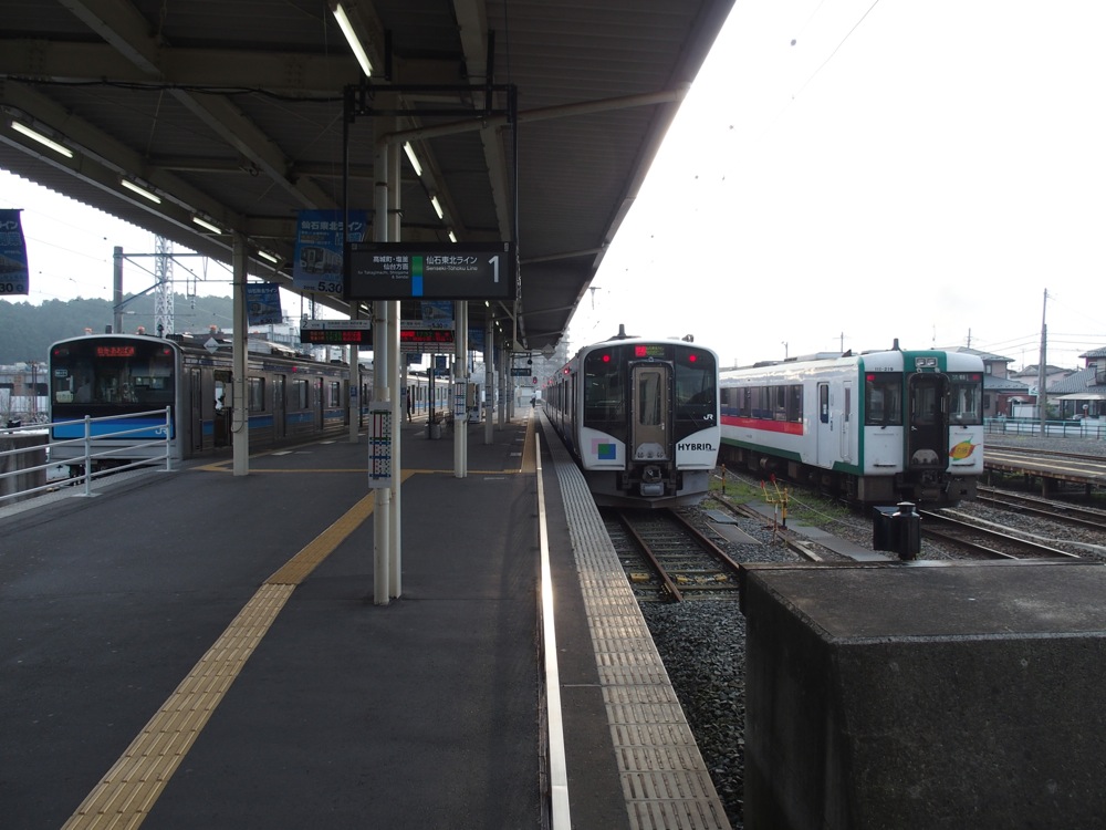 この路線の開業で仙台駅から東北本線経由でも高城町駅に直通する事ができ、当駅で乗り換えて仙石線の松島海岸駅に向かう事が出来るようになりました。この付近の東北本線が交流電化、仙石線は元々歴史上経緯から首都圏と同じ直流電化と、異なる電化方式を直通させるにはコストとの折り合いが付かないまま現在に至っていたのですが、ディーゼルハイブリッドという新技術が使われた新車が導入され、このハンデを乗り越える事が出来たのでした。