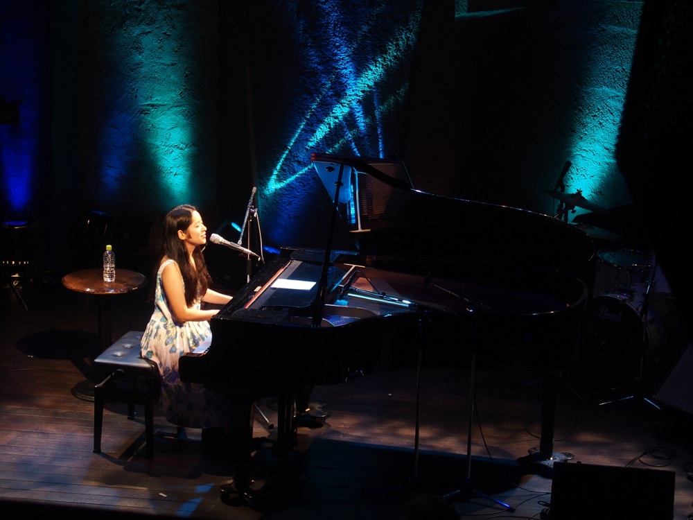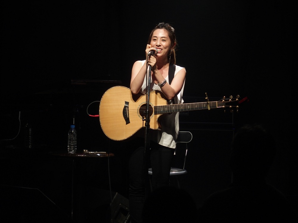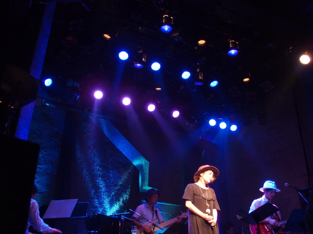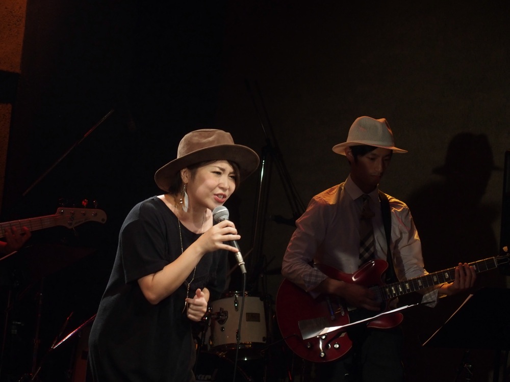 そして2バンド目には、ピアノ弾き語りの上田千仁さん(左上写真参照)。こちらは打って変わって?透明感のある光景が広がり、ピアノの良さを全面に引き出すかのような歌い方でした。曲で情景を感じさせるというのは素晴らしい事だと思います。その後の3バンド目には、今年の1月に彬子さんとの新年会ライブ〔2015年、アッコとアイの新年会ライブ参照〕でもお世話になった清水愛さん(右上写真参照)。今回はギター弾き語りでのスタイルではありましたが、バックバンド演奏時以上のパワフルな歌声を聴かせてくれました。9月3日(木)には御自身のワンマンライブが渋谷 JZ Brat であるとの事で、成功を祈りたいと思います。