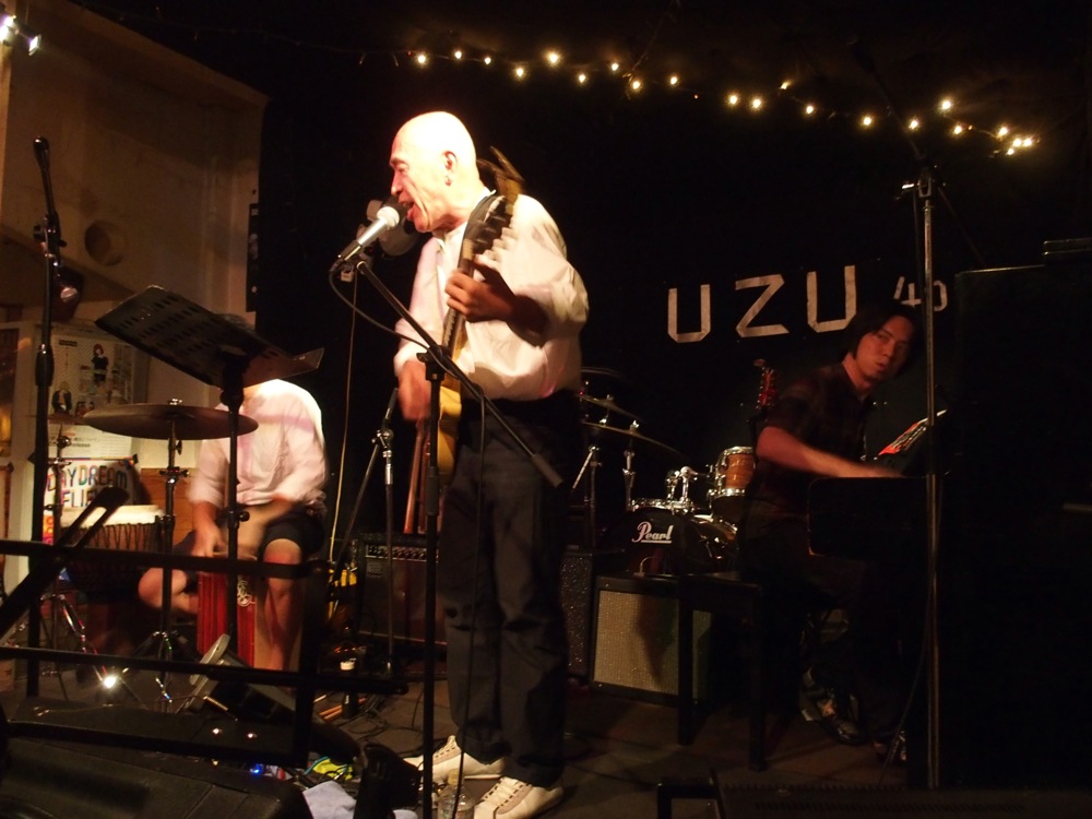 9年振りに Uzu に訪れた為か、ステージ上にちょっとした変化がありまして、照明が増えていたのと、何とスモークを焚けるようになっていました(笑)。これが結構な威力で、それぞれのソロを回している時に焚かれていたのですが、そんなに広いステージでは無いので、たちまち目の前の視界が薄くなり、不思議な環境が出来上がりました。しかしその時には照明の綺麗な光の筋道が見えたりしたので、これはこれで良かったのかもしれません。伊藤さんが歌うからこそ面白い“ギリギリなんだぜ”(笑)の次に、強引にアンコール曲“人生色々下心”をお送りして、無事に終了となりました!…久し振りのライブでしたが、大いに盛り上がったと思います。
