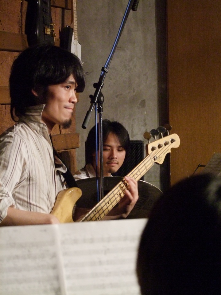 そして、楽しいライブの時間です(笑)♪…この日は、いつも自分達を手伝ってくれている、テナーサックスの藤田淳之介君が不参加となっていた為、恐れ多くも、自分達の先輩にあたる村瀬和広さんという方に手伝って頂きました!…これがまた、初めて合わせたとは思えないくらいの吹きっぷりで、一同驚愕でした…。素晴らしかったです。もちろん、こちらも負けてはいられませんが…(笑)。