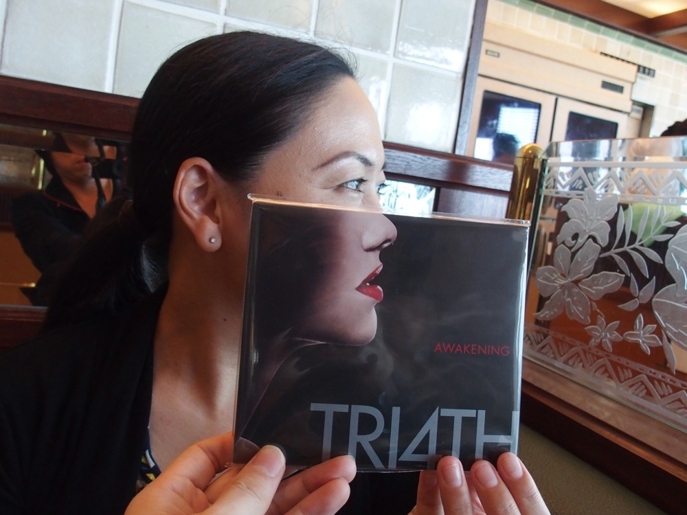 熱気に包まれたライブの翌日はオフ日とさせて頂いていて、久し振りに那覇中心部に留まる事になっていたので、これまでお世話になった方々への挨拶と、CDショップへの訪問を幾つかしてきました。そして西仲さんのCDは勿論だったのですが、この10月7日という日は TRI4TH の 4th.CDアルバム『AWAKENING』の発売日でもあり、沖縄県下唯一のタワーレコード、那覇リウボウ店さんにも足を運んできたのでした。実は西仲さんの妹さんが TRI4TH の大ファンでもあり(笑)、早速購入してくれたとの事。左上の写真も実現させてしまいました(似てますが、これは妹さんの方です…笑)。