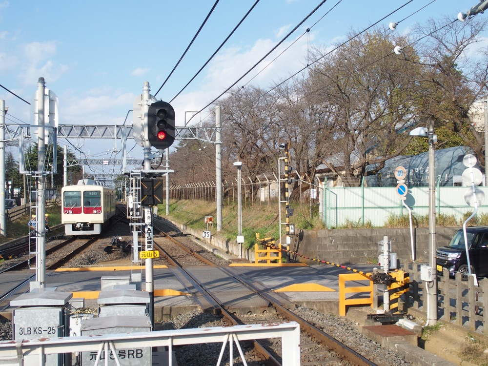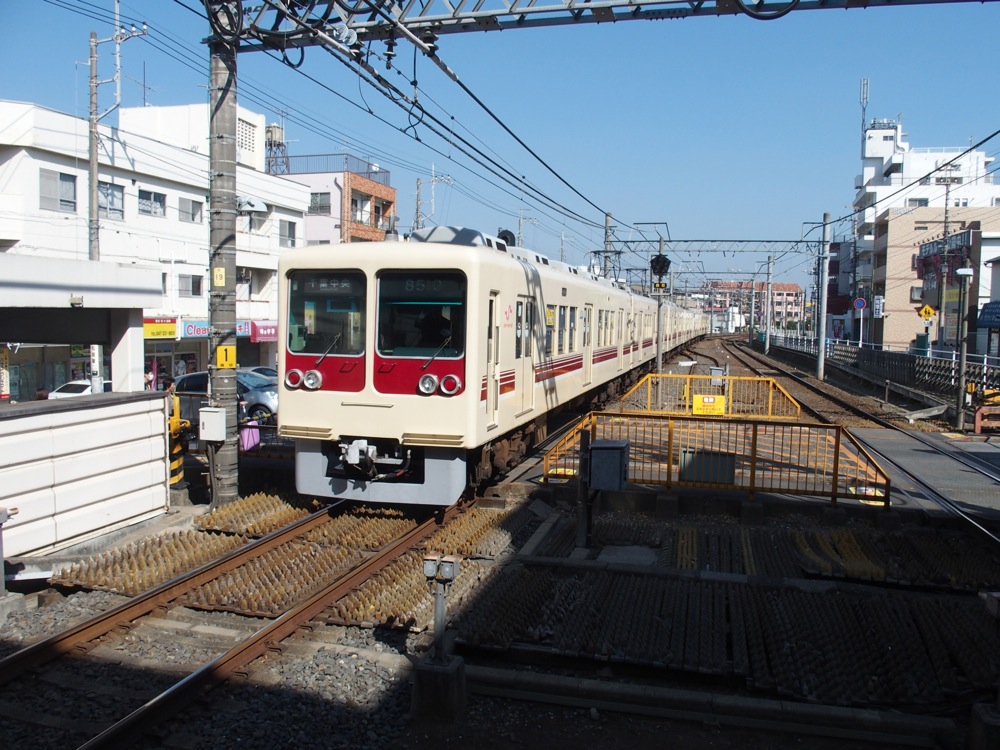 車両の特徴ばかり説明してしまいましたが、今度は線路付近の特徴も見てみましょう。右上写真は上本郷駅での写真ですが、線路の付近にトゲトゲしいものが設置されているのが分かりますでしょうか。現在こそ駅のホームに行くには、橋上駅舎を通ったり、地下道を通ったりする事が多いですが、まだまだ駅の規模が小さい頃は駅構内に踏切があり、道路から改札を通ってホームまで、段差無く行ける駅も多かったのです。その時に駅付近の踏切(改札外)から線路を通って直接ホームに行けてしまうのを防ぐ為に設置したもので、今でも地方の鉄道や小規模の鉄道の駅ですと見られたりします。新京成は橋上駅舎になっても、まだ色々な所でこの施設は残っているので、今では珍しいものに映るかもしれませんね。