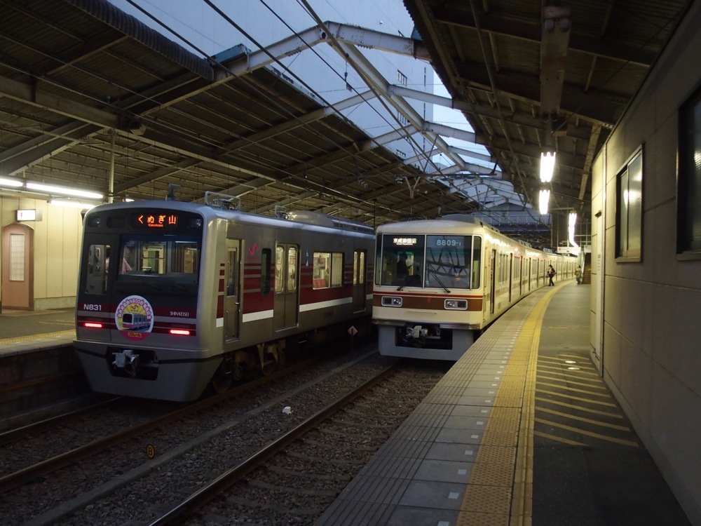 北習志野駅は習志野市ですが、この先船橋市に入り、習志野駅へと着きます。そして前原駅を過ぎると、ここでも大きくカーブして新津田沼駅へと入ります。繁華街の中の駅ですが、JRの津田沼駅とは400メートル程離れていて、ここは徒歩での連絡となります。…とは言え、乗り換え客は多く、それ故に繁華街も発展してきていると言えるのかもしれません。