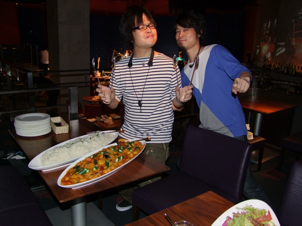 リハーサル後には、お店から賄いを頂けました。もちろん、出演者全員分以上のものが確保されており、これまでキツキツで確認作業を続けてきた自分達にとって、正に精神面でのオアシスにでも出会ったような心境で(笑)、これで相当リラックスする事が出来たものです…。また、こういった時間が、出演者同士のコミュニケーションを生む良き場にもなっており、その大切さをメンバーは何よりも強く知っている事でしょう。確かに、今までこのメンバーで、何回食事を共にした事やら…(笑)。さあ、いよいよ始まりです。