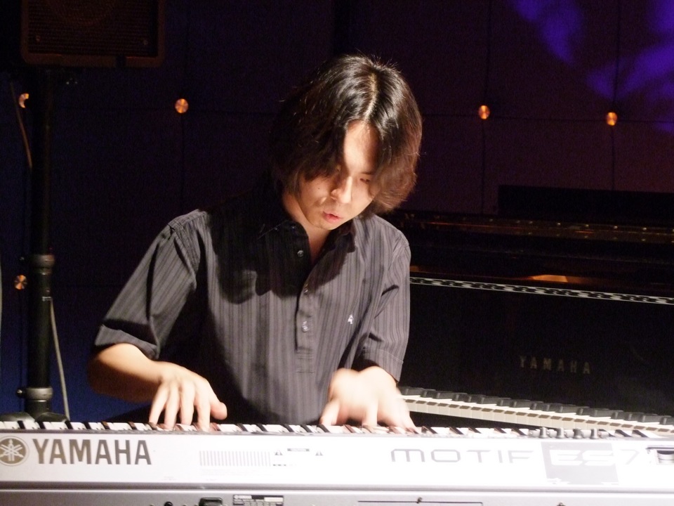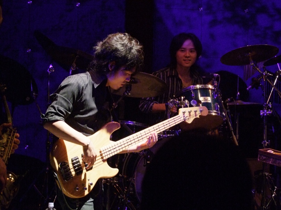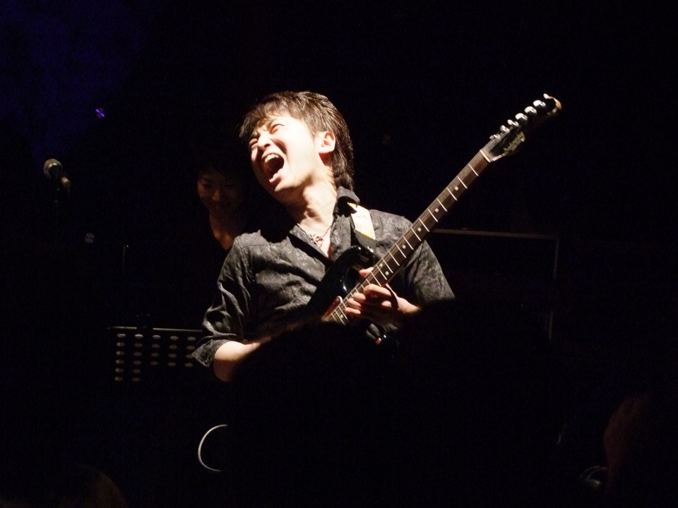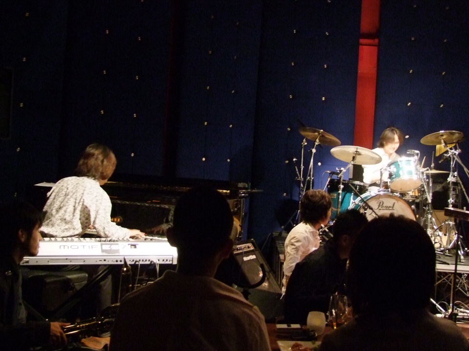 この時に考えていたのは、今までの展開には極力しない事、何をやってるんだか、よく分からない状況にする事…、後は、とにかく秋航を見てる事…。この3点くらいでしょうか…(笑)。もう、ソロが始まったら自分でも正直よく分からないのです。とにかく音に反応するというか、後は指に任せると言いますか、結局は素早い反射と判断力が大事な場面ではありました。そしてそれらの事はほぼ実行出来たように思います。また、こういう時に忘れてはいけない事に“適度な遊び心”というのがありまして、実はこの日のライブに一番必要なものくらいに自分では思っていました。それらの集大成…というと、少し言い過ぎかもしれませんが、自分では楽しい時間が過ごせたと思っています。環境にも反応するくらいの気持ちで曲に向かえたから良かったのかもしれませんね。