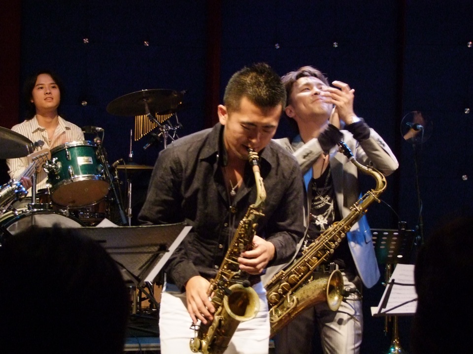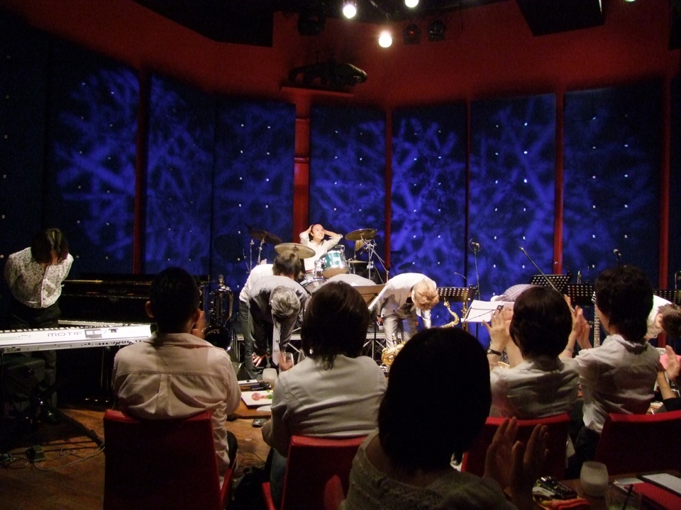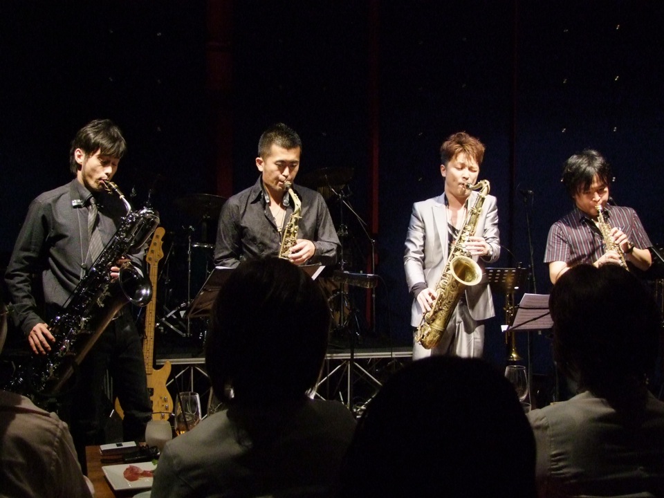 ここで本編は終わりですが、拍手が鳴り止みません…。GG が結成10年を迎えるにあたって、本当にお客さんに支えられてここまでやってきた。そんな思いが交錯する時間になりましたが、ここでサックス隊の4人だけで1曲、サックス・アンサンブルの“Song For Lovers”という、副田君の、言わばクラシック風のオリジナル曲を披露しました。…やはり、GG の原点はここにある。1ステージ目のオープニングでも書きましたが、GG とクラシックというのは、自分が思っている以上に切り離せない関係にあるのかな…と思いました。今後も、是非こんな曲を聴かせてほしいなと、素直に思っている自分がいたものです。