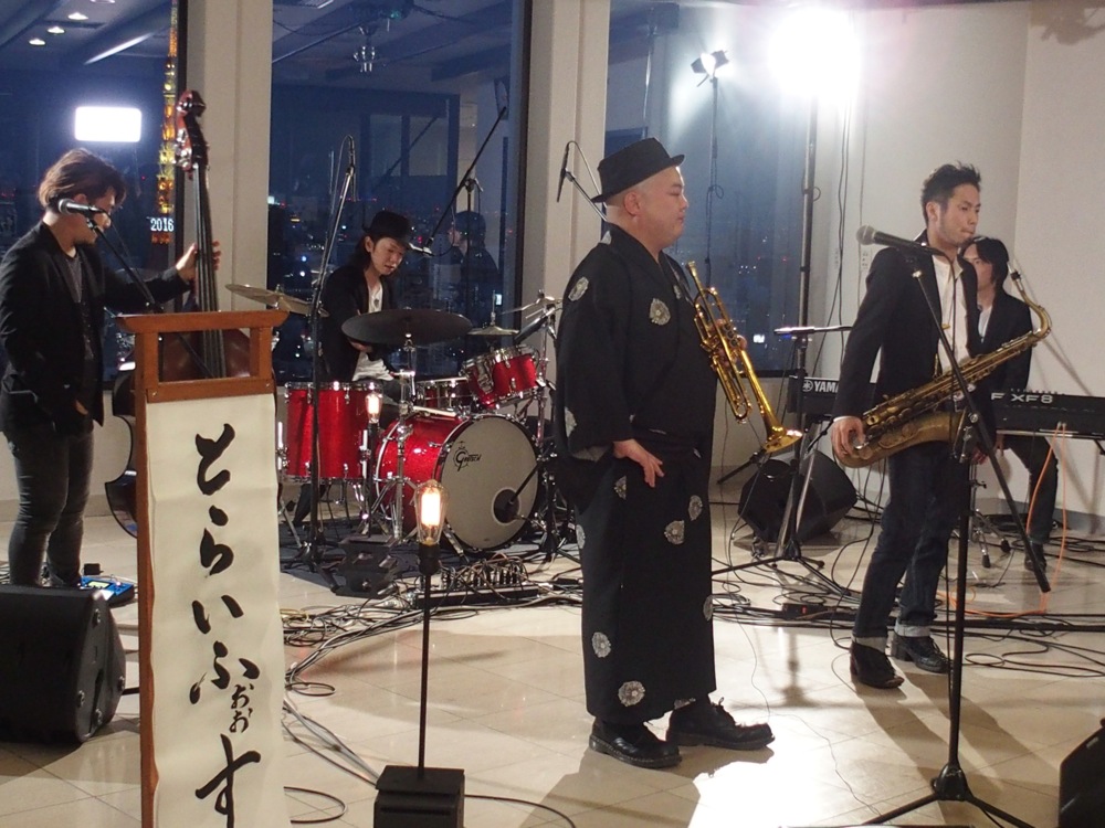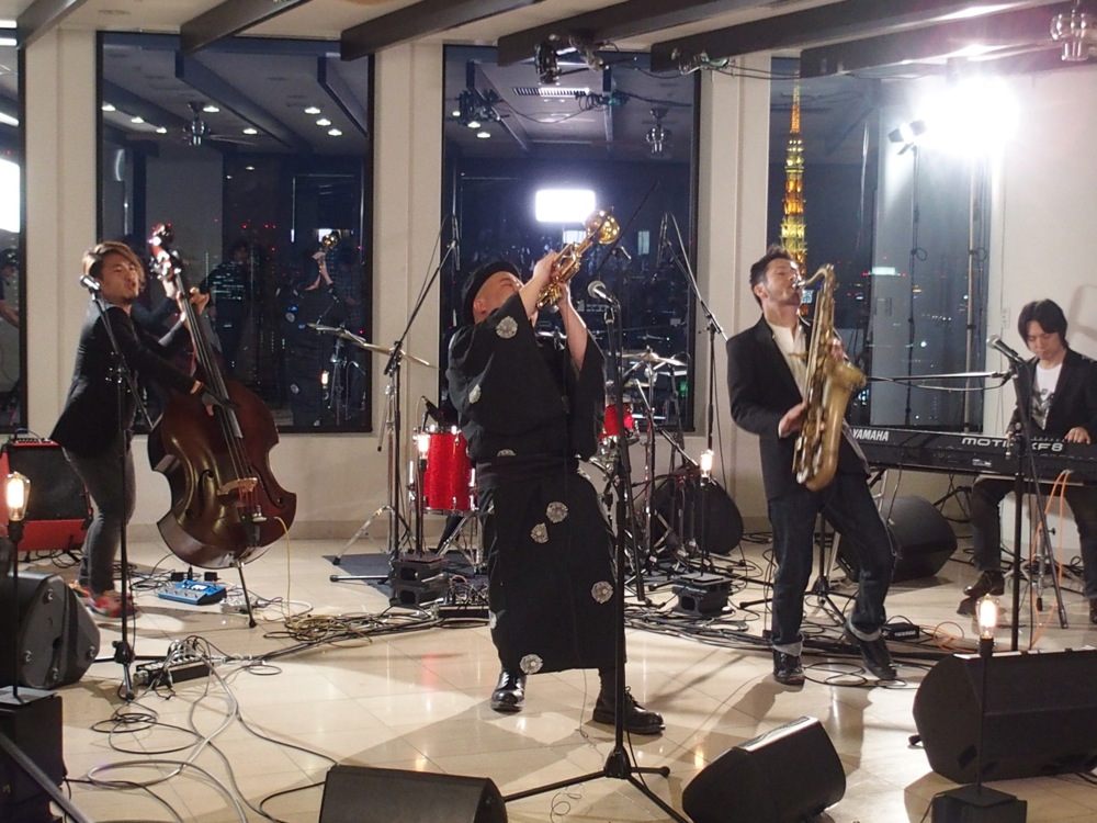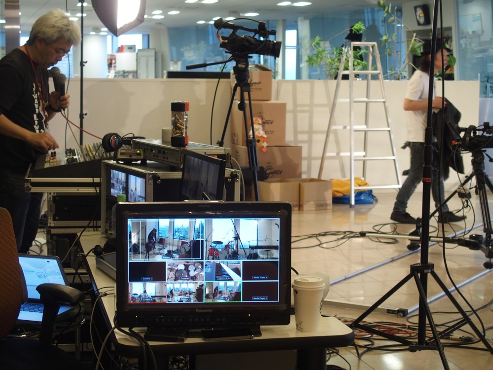 ステージの後ろの窓からは都内の展望が見渡せ、東京タワーもすぐ目に入るような、非常に素晴らしい環境でやらせて頂きました。音響もしっかりしていて、入念な打ち合わせとリハーサルを行え、準備万端の状態でステージに本番に備えられて有り難かったです。また、どちらかというと時間を掛けていたのはカメラリハーサルの方でしたが、それ故にその後、素晴らしい映像が残る事になったのでした。