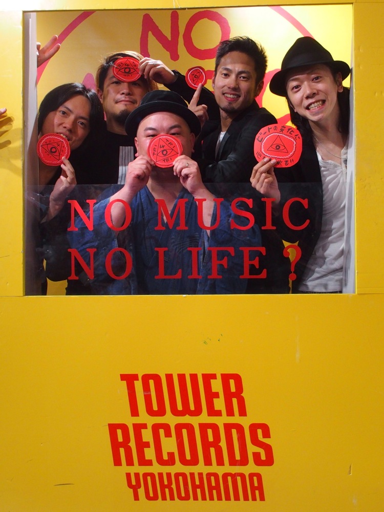 ライブ後には、タワーレコードのお馴染みのディスプレイで記念撮影をしました。ここでは、裏ロゴを制作して頂けたタワーレコードのスタッフの方と一緒に、せっかくなので例のロゴも入れて(笑)撮影しました。なかなかの記念になったのではないでしょうか。