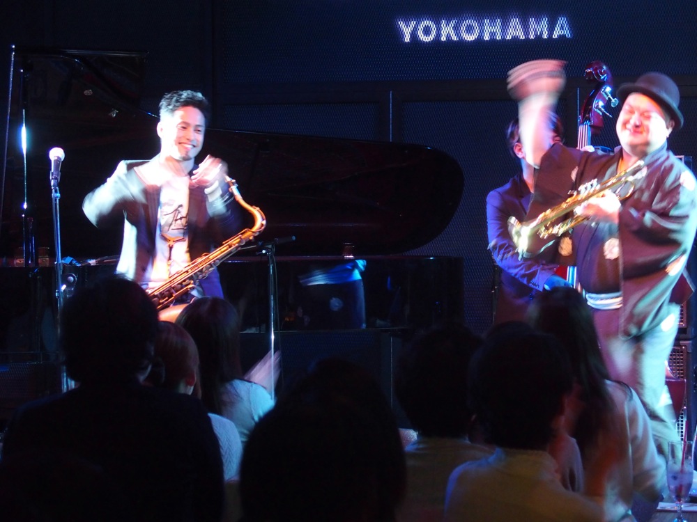 2ステージ目では、ラスト3曲の時点でダンスタイムへと突入させました。このステージの中間部分で演奏したのが、前述の“BMW の女”でしたが、この曲が終わって“Moanin'”に傾れ込んだから、ラストスパートへと発進していくのでした。客席の様子は、ステージ上から見ても圧巻の一言で、こちらもテンションが上がっていきます。演奏にもその様子は表れており、その音にお客さんも素直に反応してくれて、更なるテンショングラフの増加に繋がるのです。