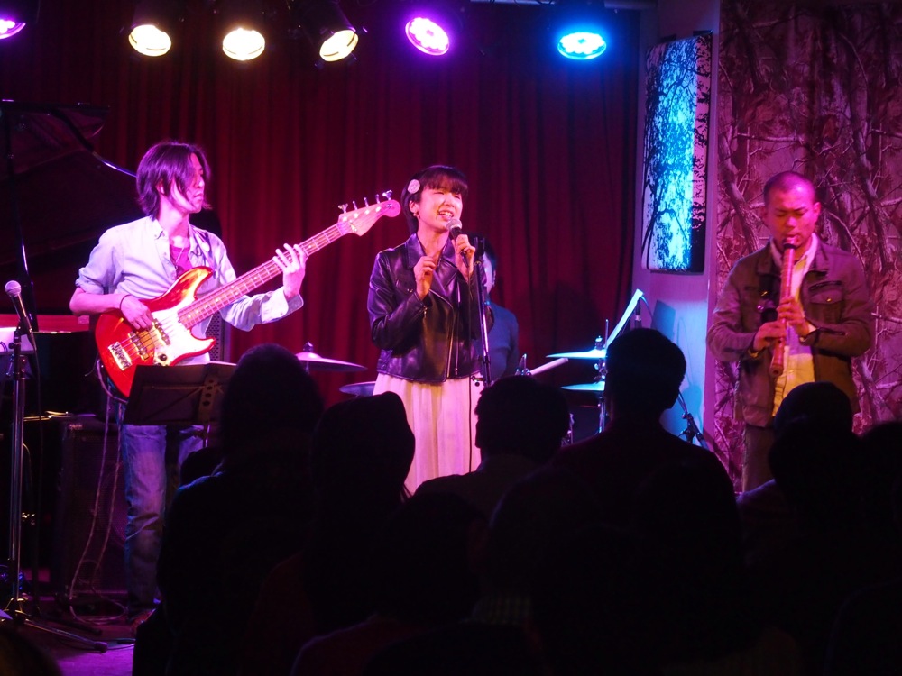 …との事です。御存知の通り黒船というバンドは、北の津軽三味線と南の奄美島唄をジャズのフォーマットで表現するバンドで、これだけで既に特徴的なのですが、こうしたバンドを集めてイベントを行うというのは大事で、フィールドは違えど、バンドによっての個性は自分達に刺激を与えてくれる事は間違い無しで、演奏者としても興味があるところでした。勿論、お客さんの興味も一気に惹き付けたようで、当日は満員御礼で迎えさせて頂きました。