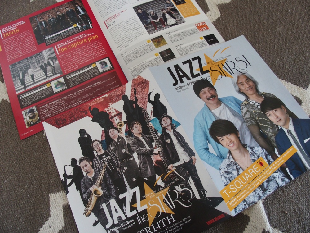 …また、これと並行してタワーレコードでは、2016年春のジャズ・キャンペーンとして、『JAZZ THE STARS!~TOWER RECORDS presents 2016 Jazz Campaign』を4月19日から6月26日まで行っております。タワーレコード店にて配布のそのキャンペーン冊子には、なんと TRI4TH と T-SQUARE さんとのダブル表紙(右上写真参照)!…勿論、自分達のCDも特集されておりますので、是非とも手に取って御覧になってみて下さい!